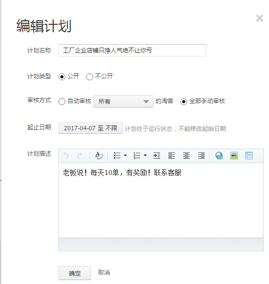 定向计划就相当于企业招聘一样,我们设定好佣金写好计划的描述就等着淘宝客来应聘吧。当然这个时候我们需要吹点牛啊,你懂得,哈哈