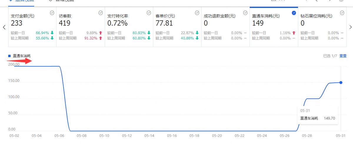 当时掌柜找到我们时,不知道该推什么产品,因为掌柜的推电镀哑铃推了一个月,没推起来,才卖了几十件;直通车也是基本处于停滞状态