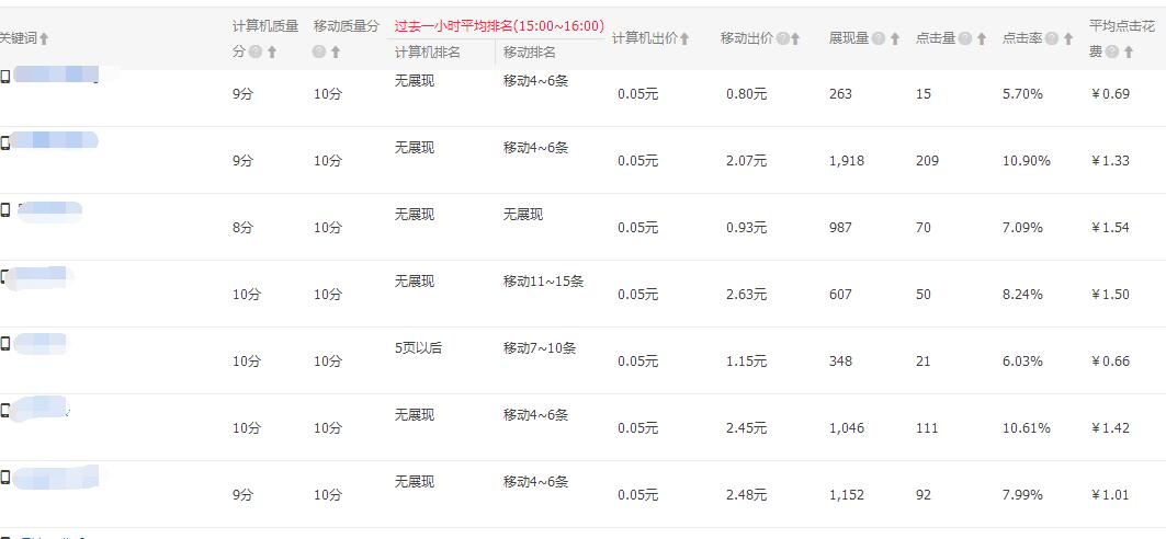 现在可以看到这个单品现在推广的所有关键词无线端的质量分都是10分的样子,这还是得益于不断优化的一个结果. 推广的关键词从最初的5个,10个 慢慢的增加到现在的22个.推广直通车大家最难搞定的也是最希望去学习到的就是如何提升关键词质量得分,不同的产品有不同的操作方法,而我选择的是保守型的操作手法, 通过精准推广适合词,这里所讲的适合词既不是类目的大词与热词,也不是流量少得可怜的长尾词,而是具有一定的市场搜索容量,即使添加到直通车中质量得分并不高,但是可以通过优化提升的词,提升质量分我一般是通过这三种方法来解决